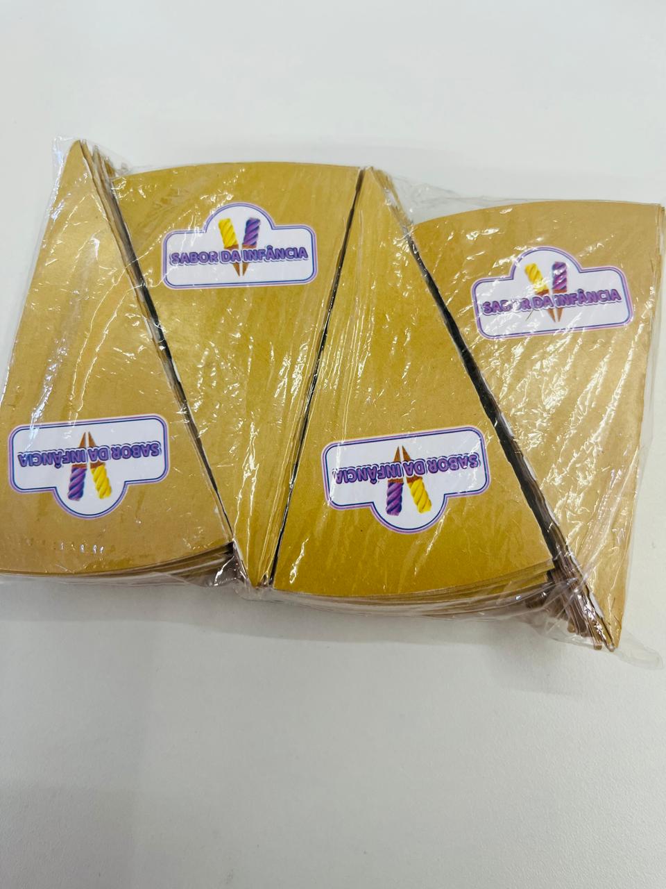 Cone para casquinha escrita Sabor da infância Dourado com 200 unidades