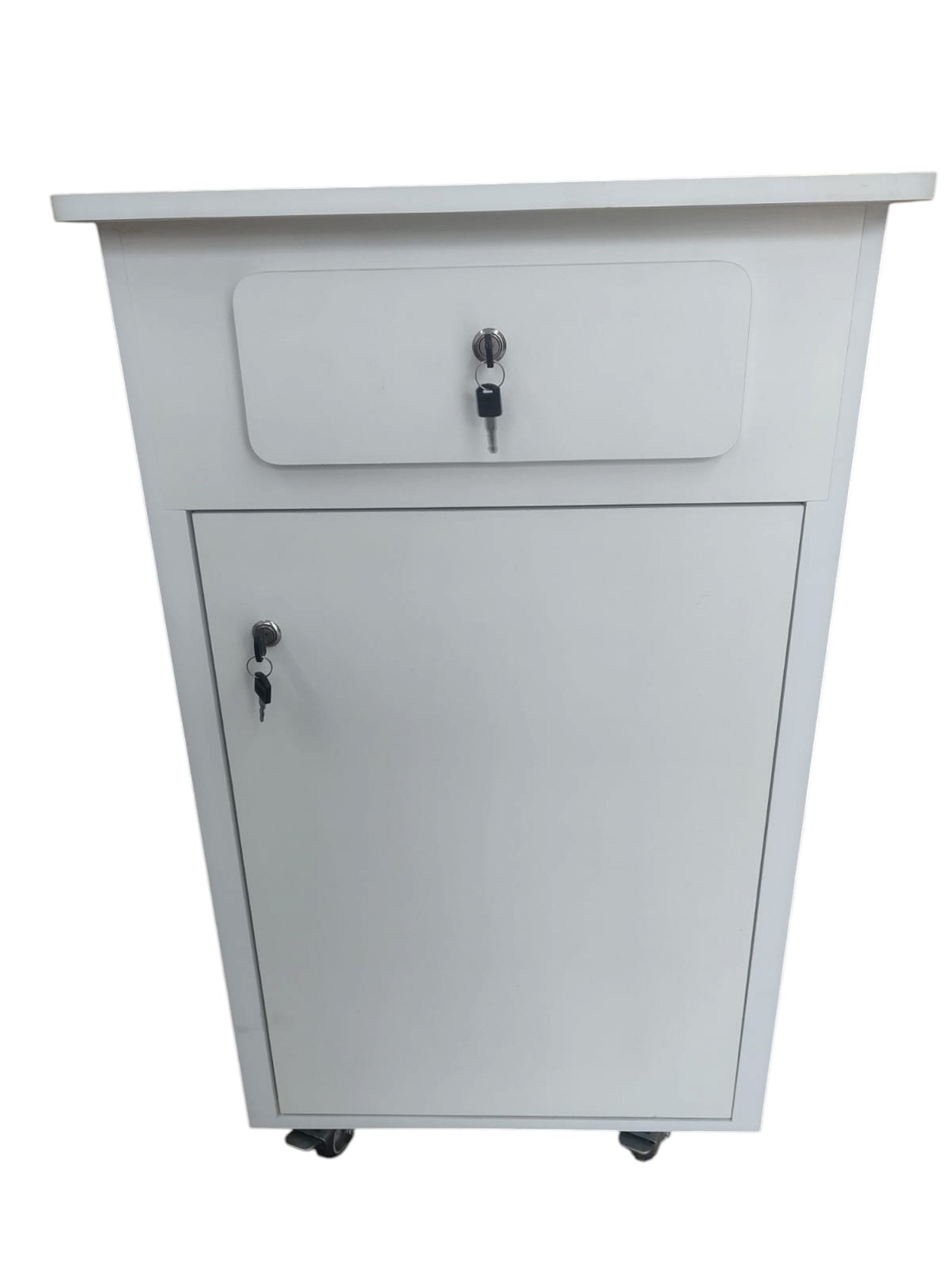 Móvel também contém 4 rodizios sendo os 2 frontais com travas para sergurança e os 2 traseiros de livre circulação.