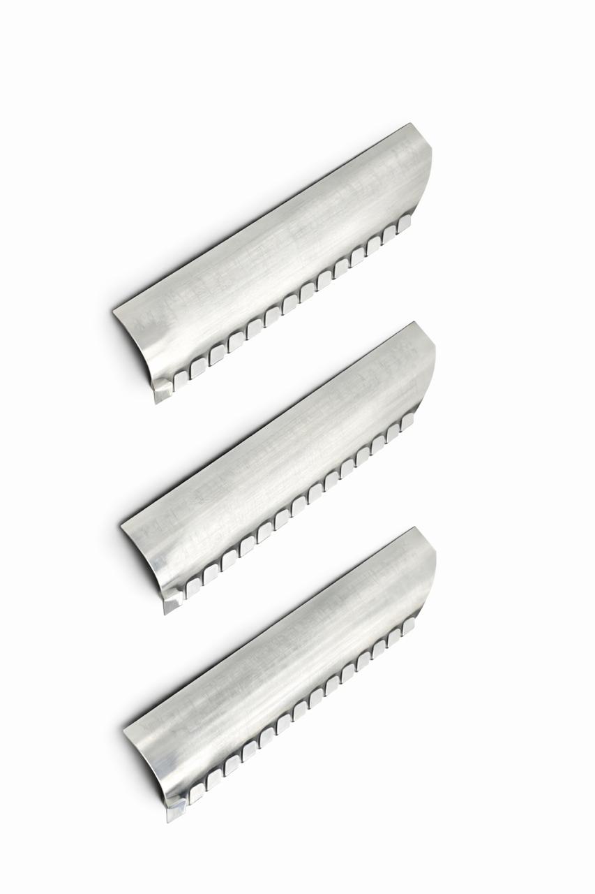 O jogo de lâminas em inox para máquina de sorvete americano é uma peça essencial para o funcionamento do batedor da máquina, responsável por auxiliar no processo de mistura e extração do sorvete durante a produção.